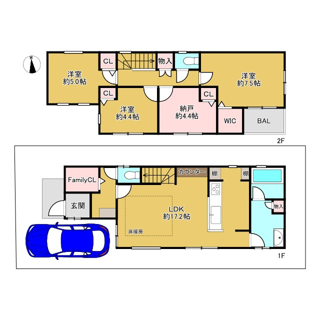 ファミリークローゼットやWICなど収納充実。